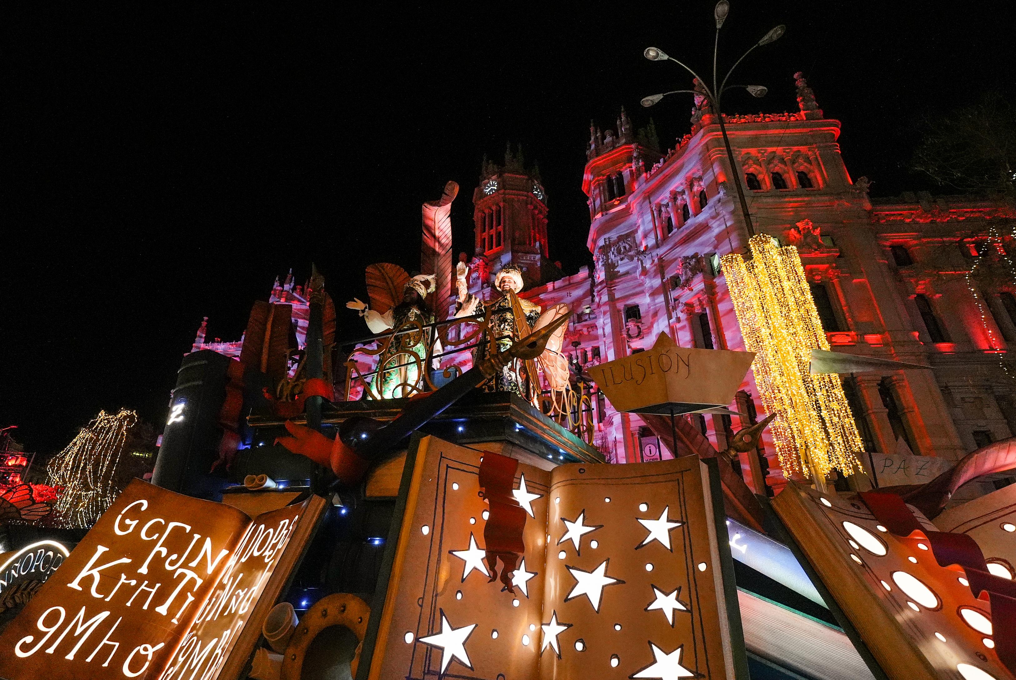 Sus Majestades los Reyes Magos han recorrido esta tarde las calles de Madrid en la tradicional cabalgata organizada por el Ayuntamiento.